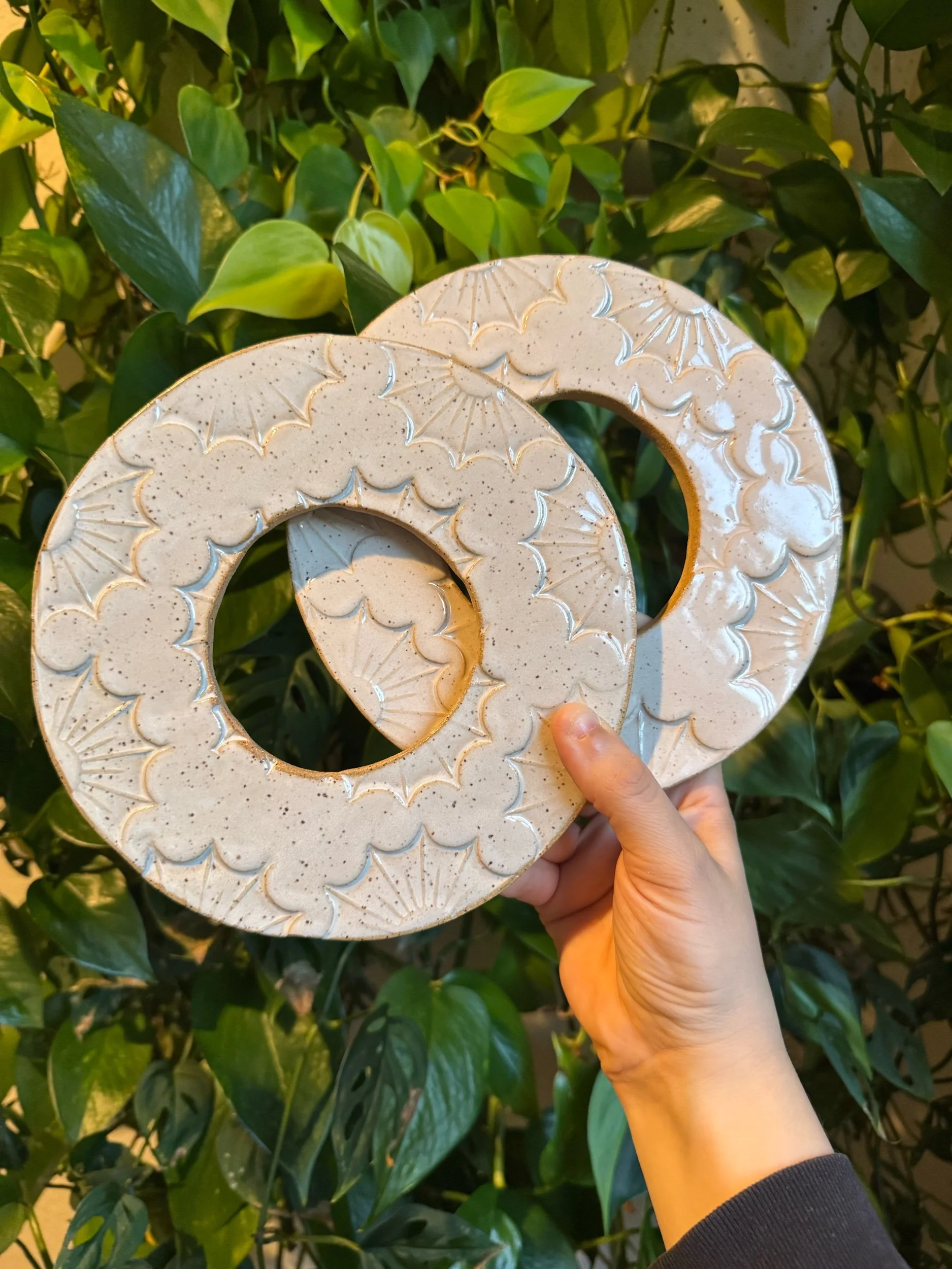 This 7-inch round trivet is made from speckled stoneware clay, hand-carved with a minimalist design and finished in a soft white glaze. Thoughtfully crafted to be both functional and decorative, it’s perfect for protecting your table or countertop from hot dishes, tea kettles, or baking pans. The cork backing keeps surfaces safe and scratch-free.